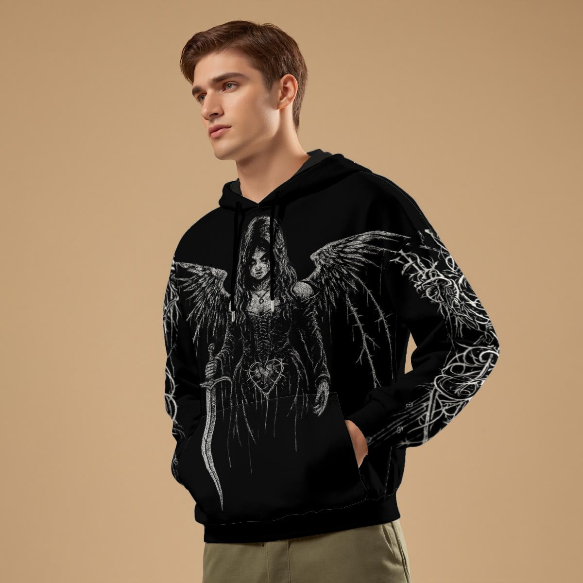 - Długi rękaw, wzór pętelkowy wewnątrz, z troczkiem, kieszeń kangurka