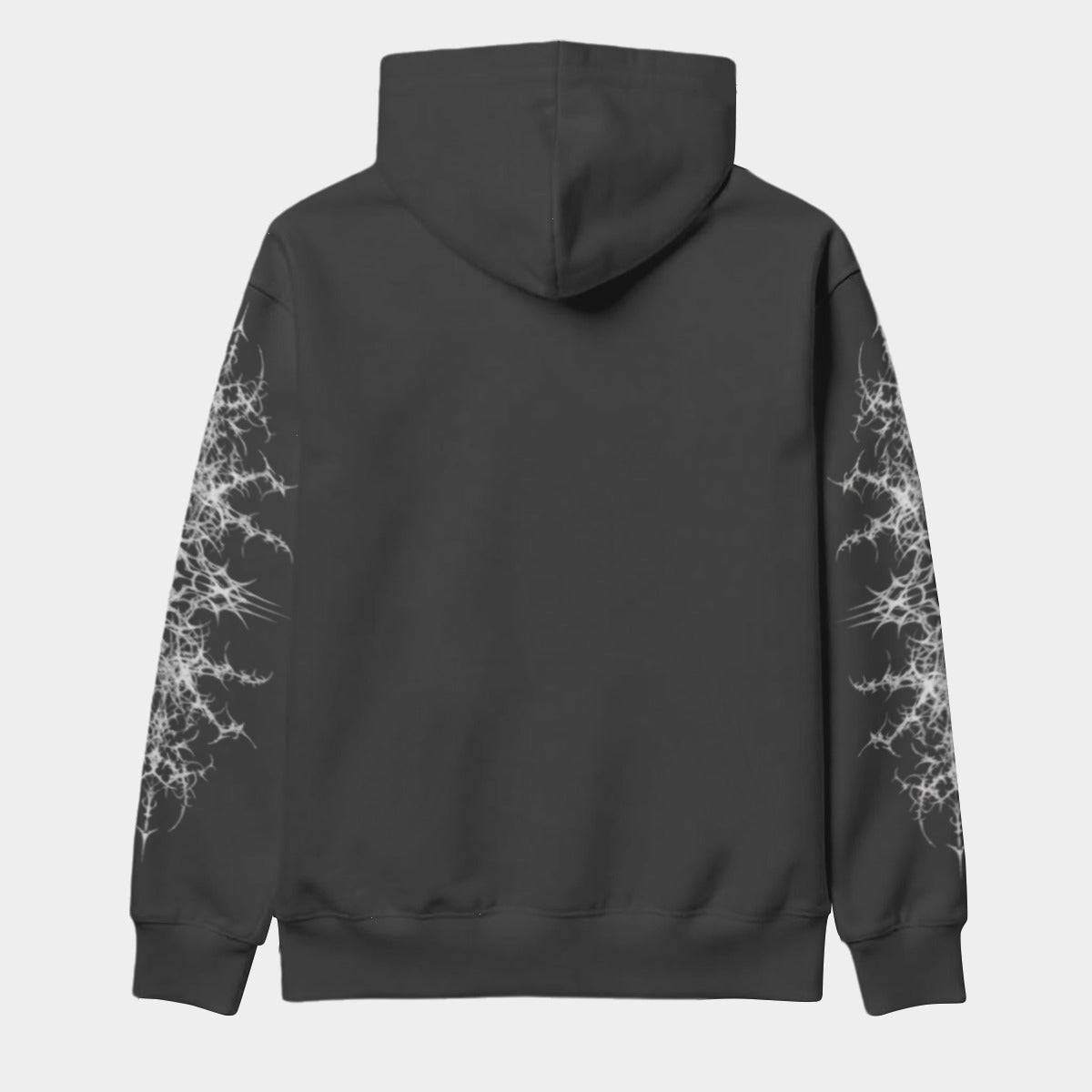 - Elementy: Biały sznurek, przednia kieszeń i czarny kaptur wewnętrzny