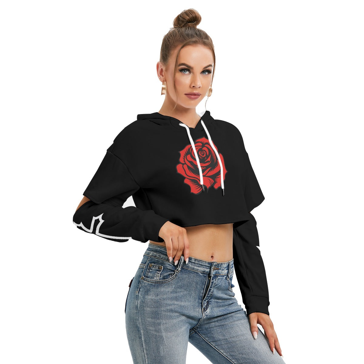 - Krótki top z długim rękawem, wycięciami i sznurkiem
