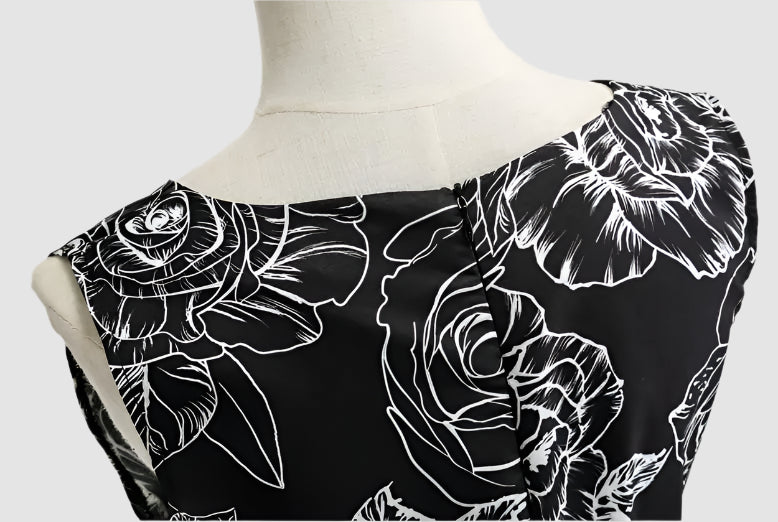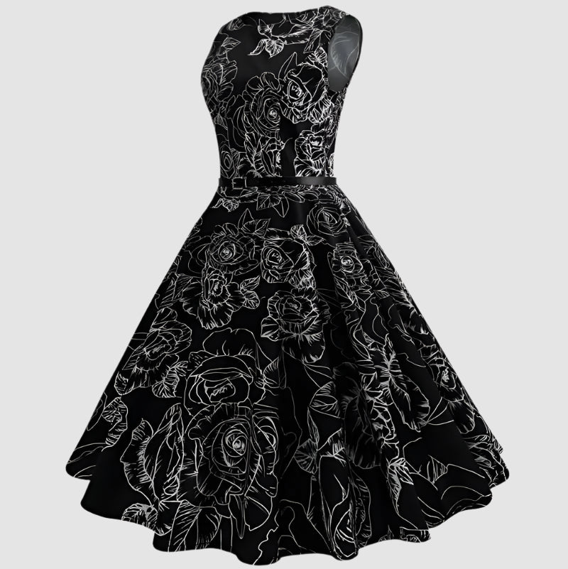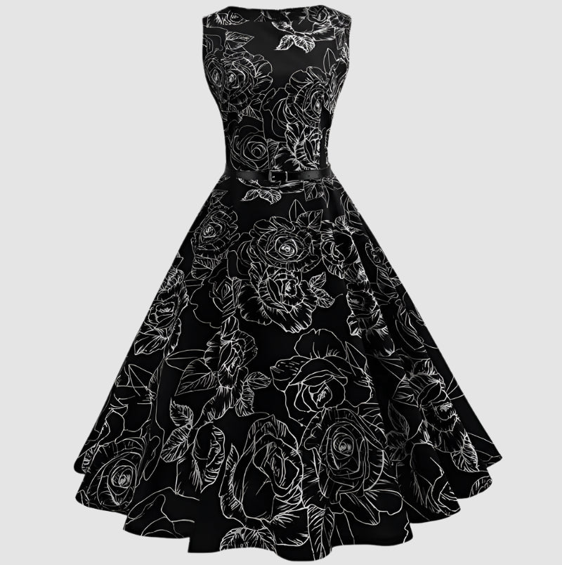 - Fason: sukienka w kształcie litery A, długość do kolan