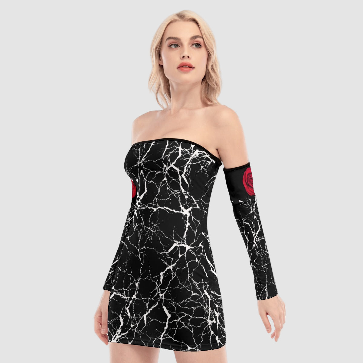 - Fason: odkryte ramiona, wiązanie z tyłu, długi rękaw, top typu tube